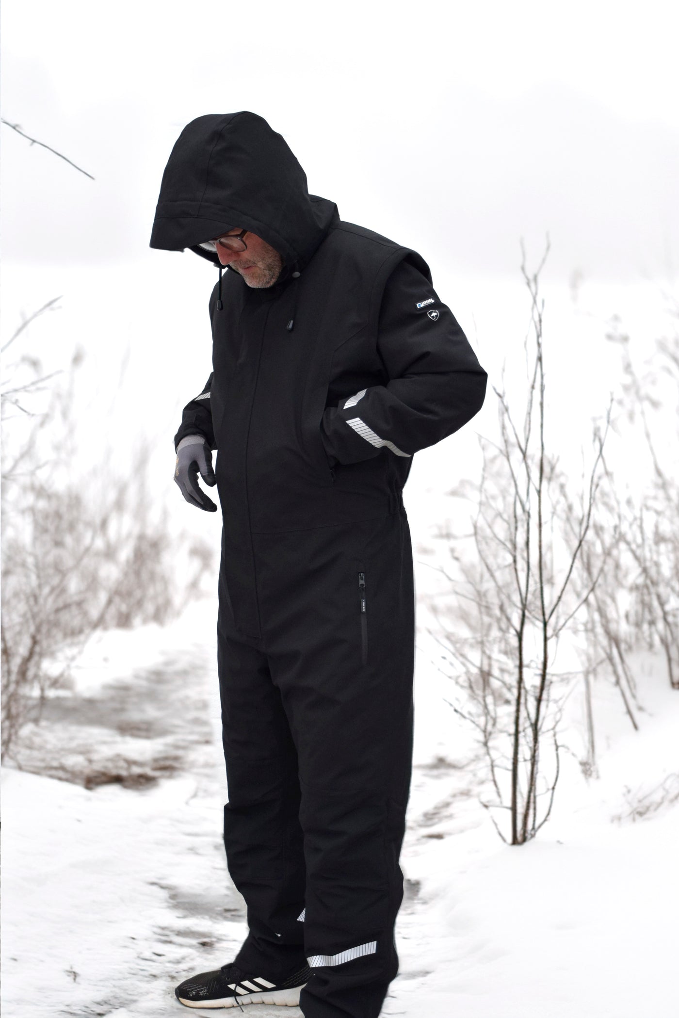 Denne Vinter heldragt fra Lyngsøe Rainwear - er en lækker dragt, som er åndbar og vandtæt. Den er lavet med skjulte to-vejs YKK lynlås med velcrolukning og velcrojustering i ærmer og ved anklerne. Der er justering i taljen og fast hætte begge steder med snøre. Den er lavet med to lynlås sidelommer, to lommer på lår med lynlås og en indvendig brystlomme. Elastisk vindfang ved håndledet og forstærkning på knæene. Den er lavet med en lynlås i benet og refleksdetaljer.