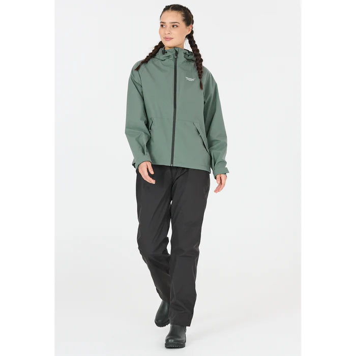 Dette lækre regntøjssæt til damer fra Weather Report har et vandsøjletryk på 10.000mm og er samtidig åndebart, så det ikke er fugtigt i regnen. Den er lavet med en hætte, som kan spændes ind, så den kan lukkes helt tæt. Justerbar velcro ærmer og ben. Der er indvendig snører i livet på bukserne, så de kan justeres. To lommer og lynlås lukning. Perfekt til udelivet i skoven eller bare til cykelturen.
