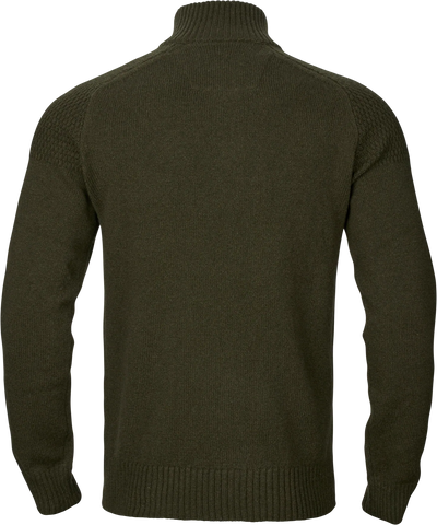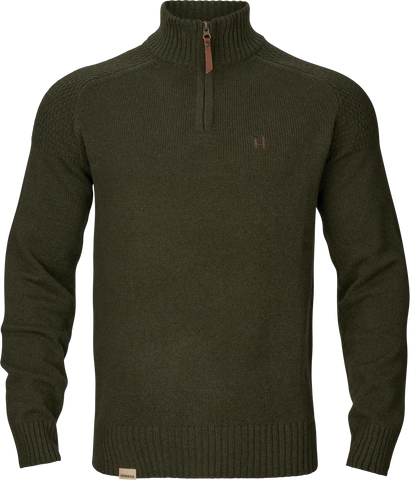 Vincent Merino Half Zip Pullover er skabt til skytter, der værdsætter komfort og stil. Fremstillet af ren, mulesing-fri Merinould, tilbyder pulloveren enestående temperaturregulering og komfort. Den har en høj hals med lynlås og et moderne strikmønster på skuldrene. En forstærkning i mikroruskind bag lynlåsen øger komforten, mens ribkanter ved krave, manchetter og bundkant holder kulden ude. Detaljer som lynlåsgreb i læder og et diskret brystlogo understreger pulloverens sofistikerede udtryk. Perfekt til både jagt og afslappet brug i naturen.